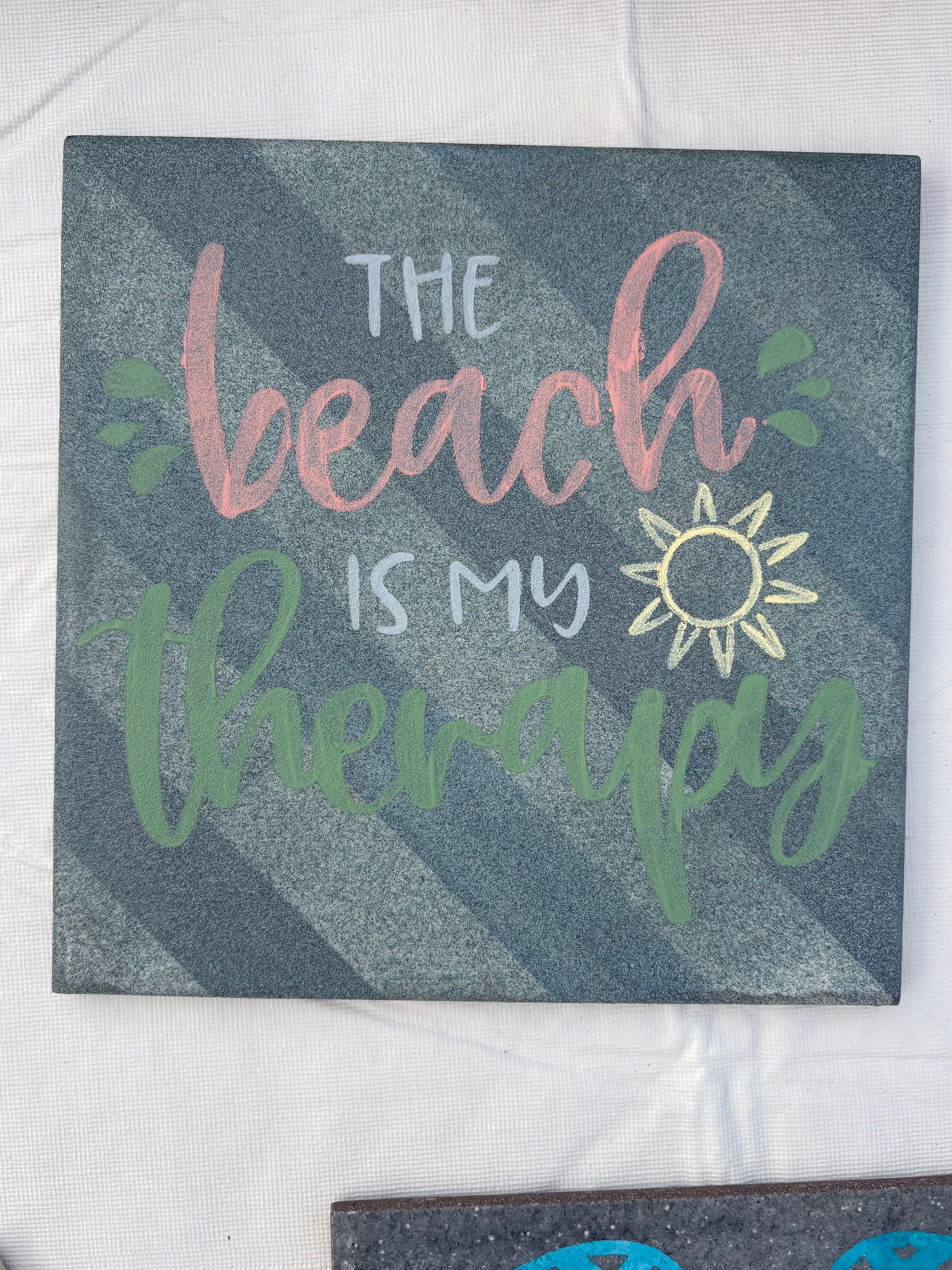 Transform your kitchen with our 8” x 8” hand painted "the beach is my therapy" trivet. Add a touch of relaxation and charm to your home decor while protecting your countertops from heat damage. Perfect for the beach lover in your life.